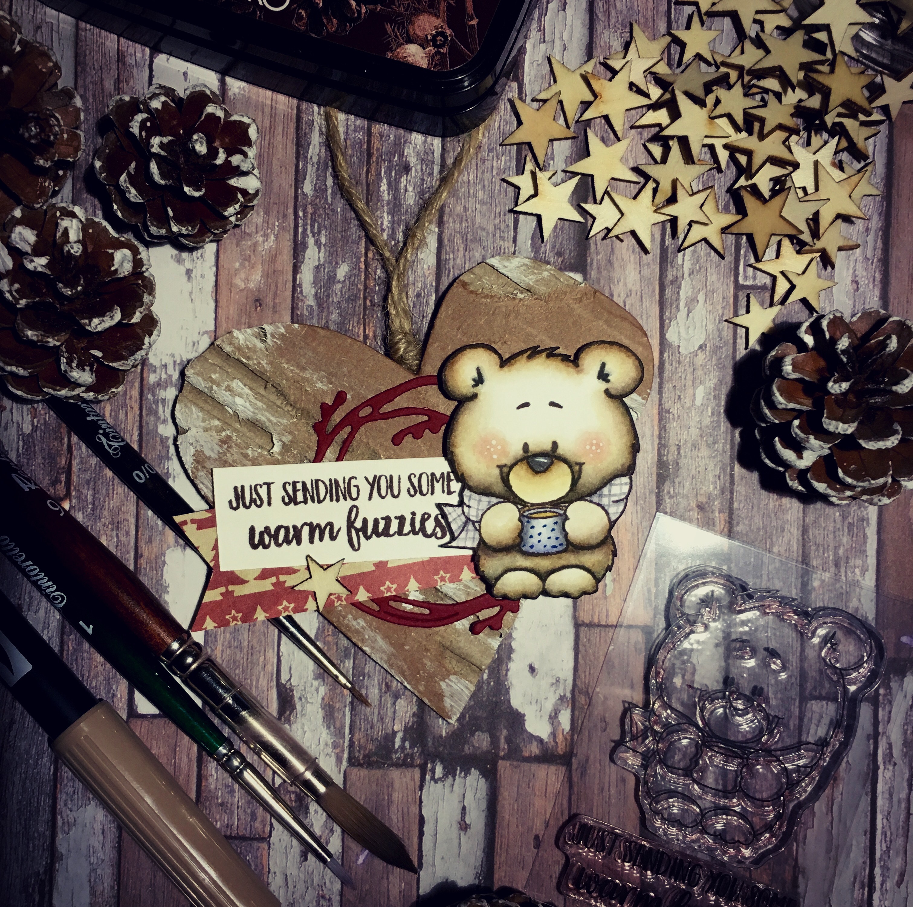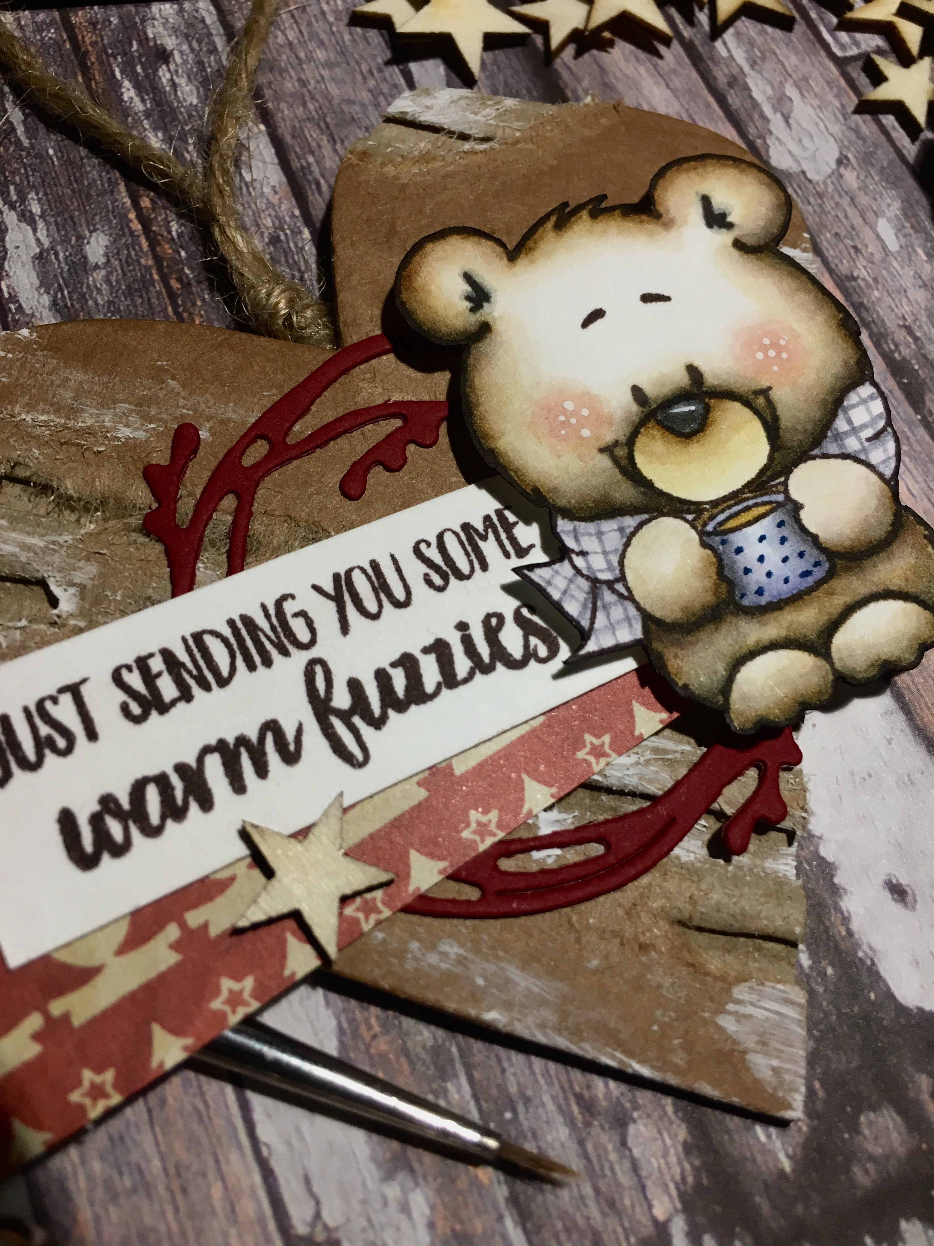Questa è una tag che mi piace tantissimo: innanzitutto c’è un orso bellissimo e super invernale di Gerda Steiner, e poi amo questa fustella a forma di cuore, mi piacciono i cuori con forme un po’ irregolari!!