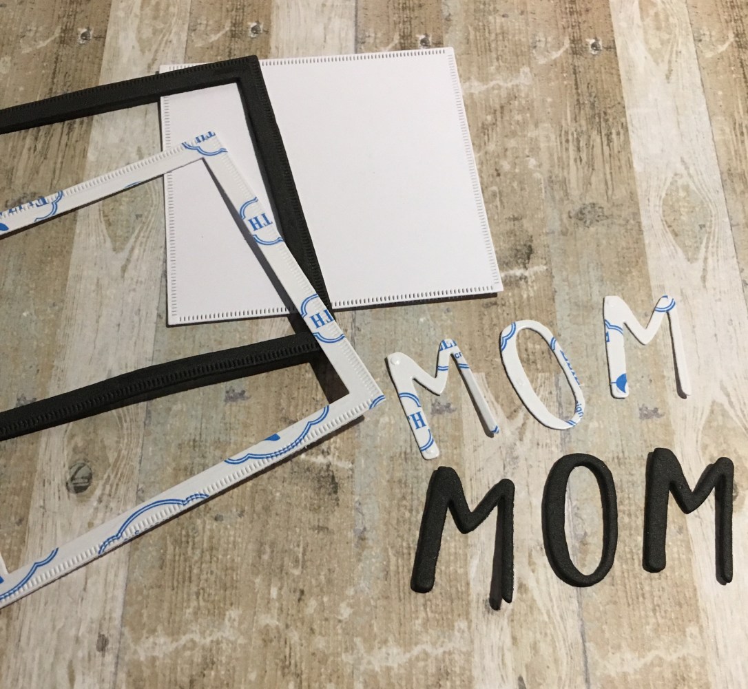 Iniziamo dalle parti con i glitter: taglia due pezzi di un cartoncino/Bazzil bianco della misura che ti serve (in modo che ci stia la tua fustella all’interno) e della stessa misura taglia due pezzi dai fogli biadesivi di ECD. Togli la pellicola marroncina e attacca l’adesivo ai cartoncini.