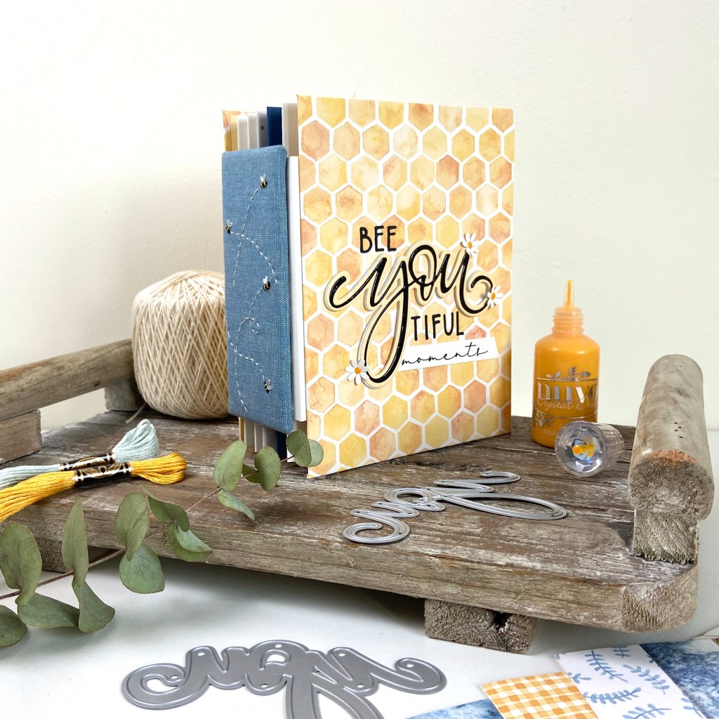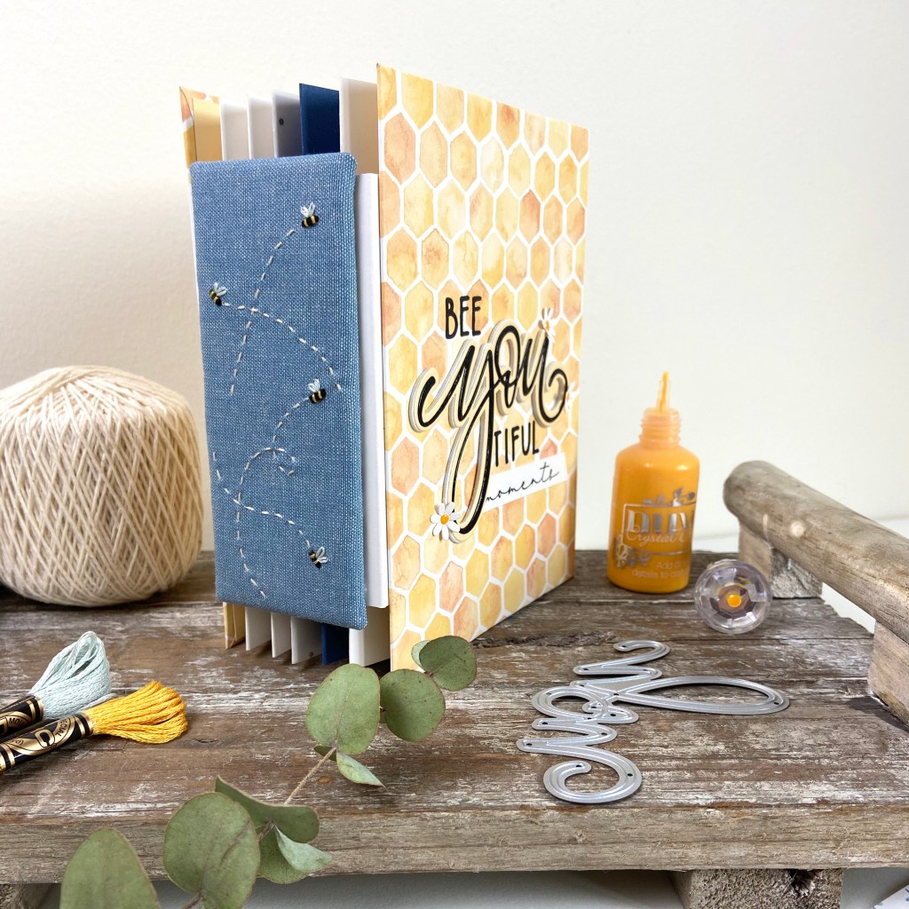 Questo album ha segnato una tappa importante nel mio percorso, non solo per l’utilizzo delle carte della collezione “Save the bees”, ma anche perchè il dorsino ricamato – che è la particolarità di questo progetto – ha ricollegato quello che era una mia “vecchia” passione con quello che faccio in questo momento.