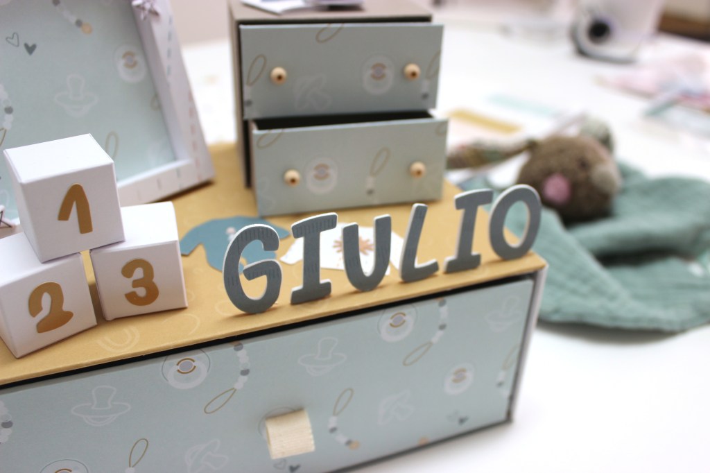 2 – Cassetto porta ricordi BABY M (puoi vederne un assaggio qui) è una struttura complessa ma non difficile, nel video trovi tutti i passaggi per realizzare questo cassetto con la miniatura di una cameretta: un regalo speciale per un nuovo arrivato e i suoi genitori e un processo creativo che ti permetterà di personalizzare il tuo progetto come preferisci. Io ho utilizzato la bellissima collezione Baby M di Lora Bailora, ma è possibile adattarlo alla collezione che preferisci. Il video corso puoi acquistarlo qui.