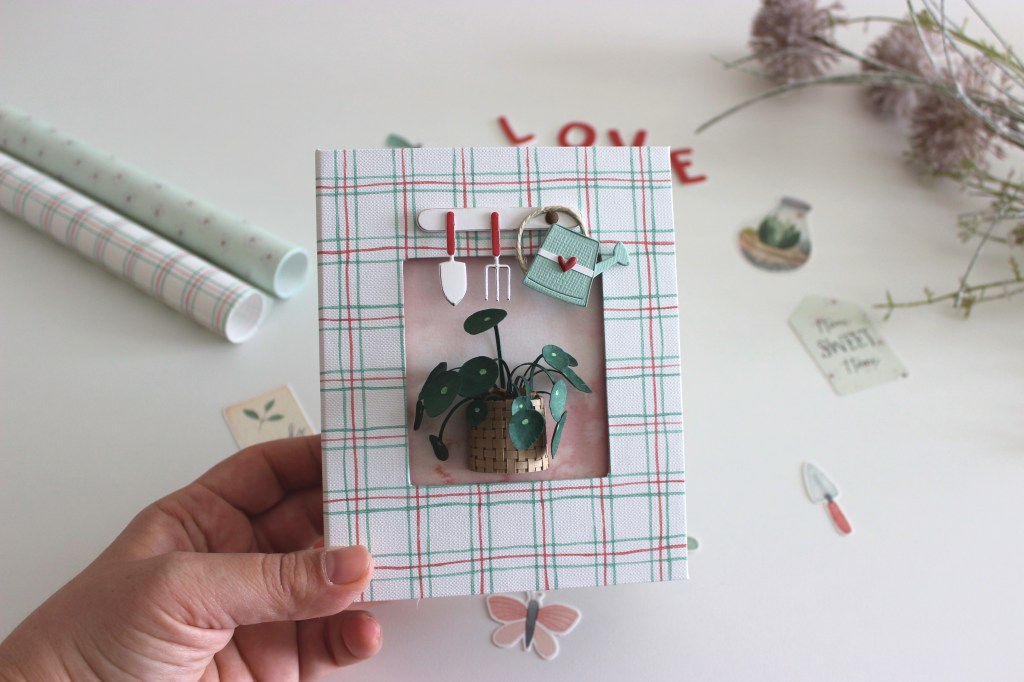 1 – Mini album LOVE GROWS HERE, (per questo puoi inviarmi una mail a stofficina@gmail.com) si tratta di un mini album ricco di dettagli e con un elemento 3D molto particolare: ti seguirò passo passo per creare la tua piantina e tutta la struttura e le decorazioni. Per realizzarlo ho utilizzato la collezione Grow with love che ho disegnato per Modascrap.