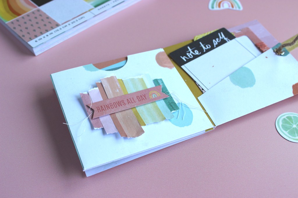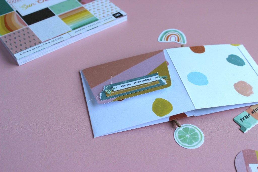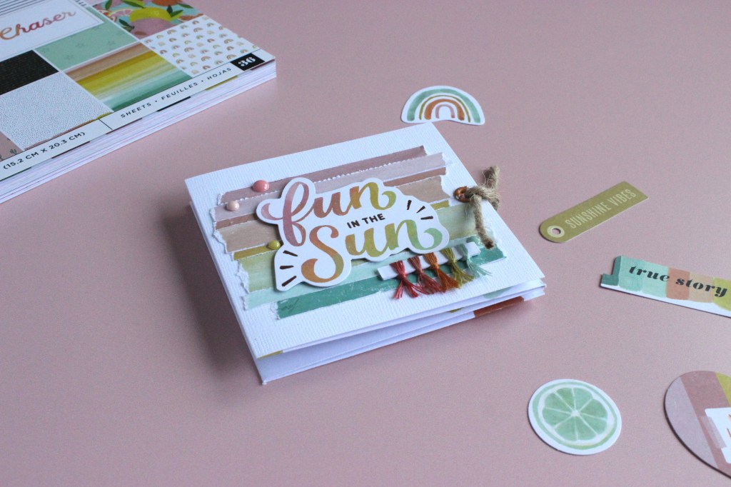 Io ho utilizzato la collezione Sun Chaser di Heidi Swapp per American Crafts che ha dei colori e delle texture molto estive e vitaminiche che non possono che darti allegria solo a guardarle!