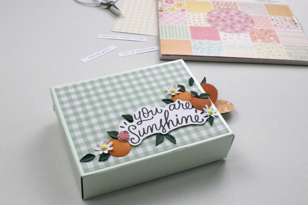 Quello che faremo insieme è un progetto molto semplice e d’effetto, sicuramente per la sua scatola che è una mini busta realizzata con la fustella di Lora Bailora SOBRE che è molto più versatile di quello che puoi pensare; infatti puoi realizzare una busta classica utilizzando carte diverse (infatti tutte le parti che compongono la busta sono pezzi separati), una busta contenitore (come in questo progetto), oppure una finestra con la parte di busta richiudibile per nascondere una foto o un journaling in un mini album.