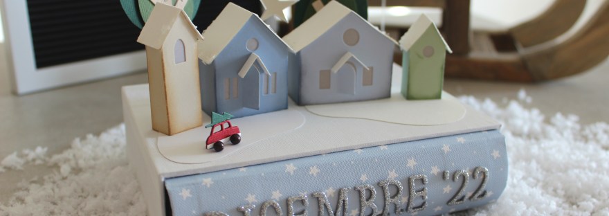Winter Village porta magia nelle case, in questo progetto ti guiderò passo passo nella realizzazione di una scatola contenitore e di un mini album con struttura rigida e dorsino arrotondato.